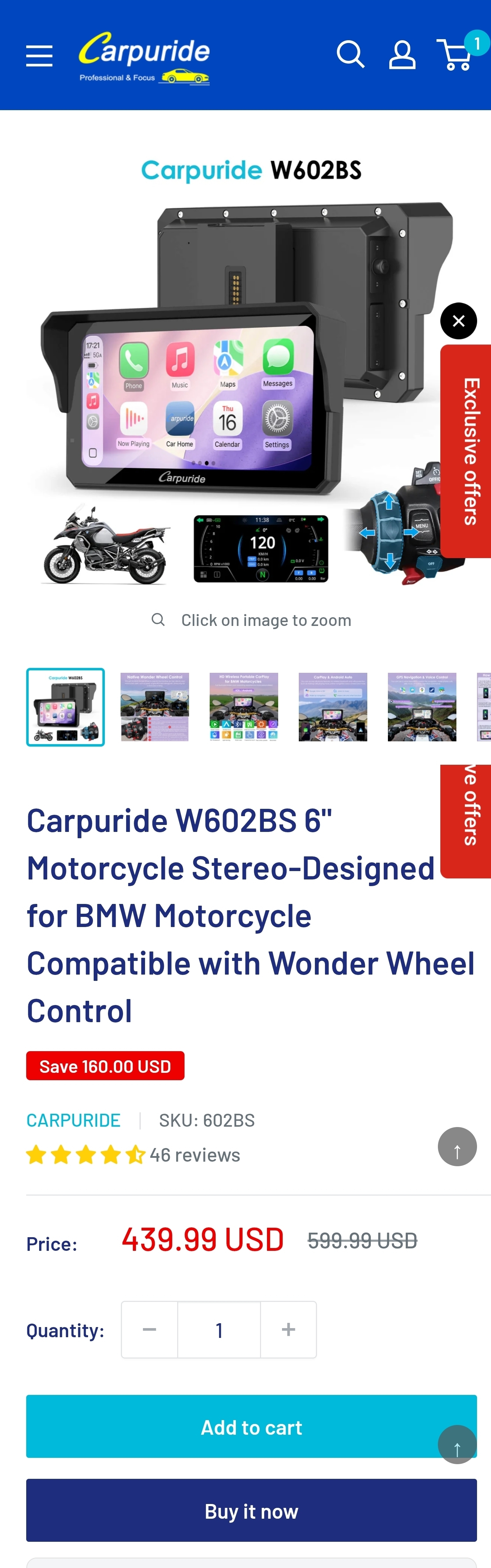 Carpuride W602BSPro Motorcycle Apple CP & AA Designed for BMW Moto Wonder Wheel