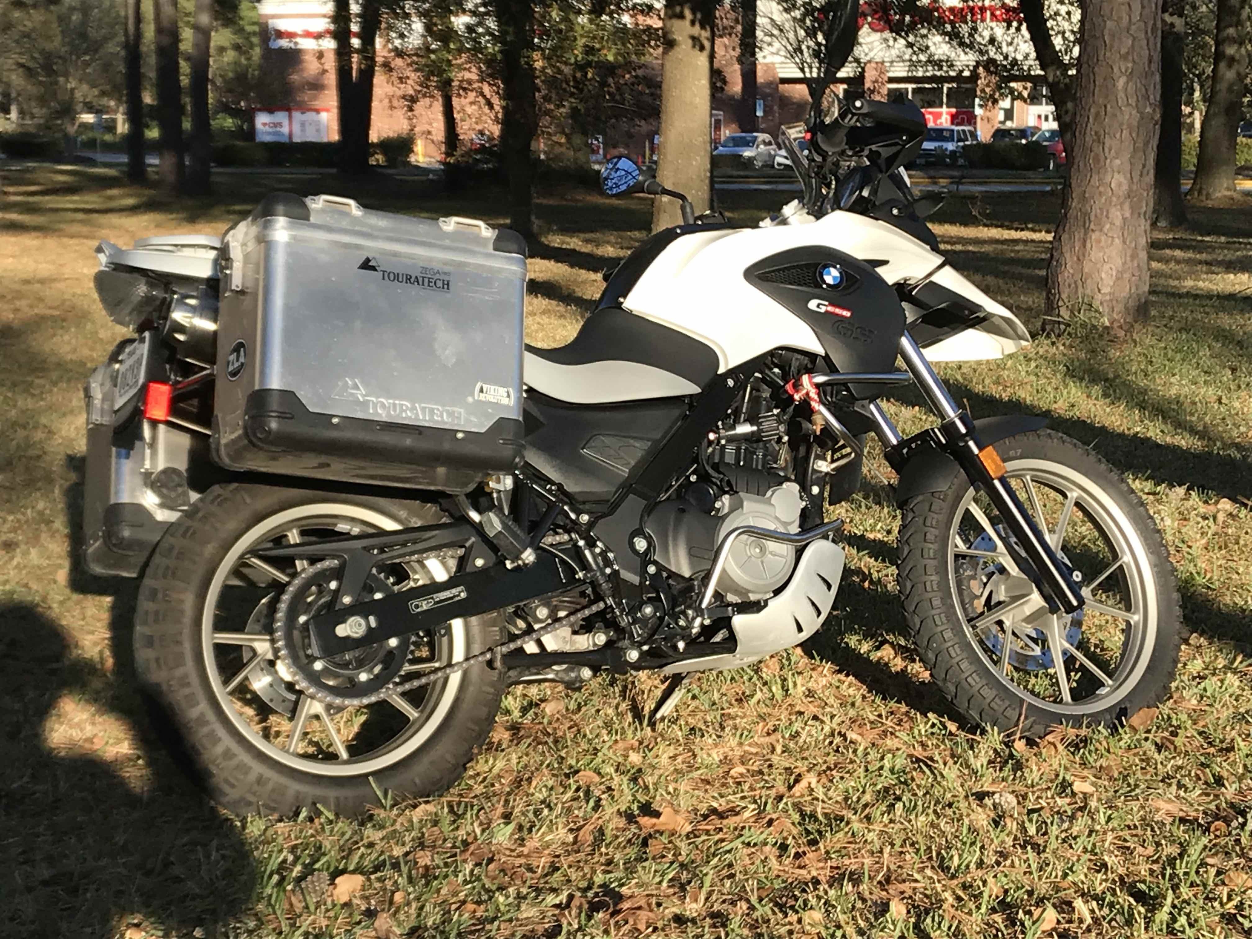 The bike includes Touratech luggage and is equipped with Touratech guards.